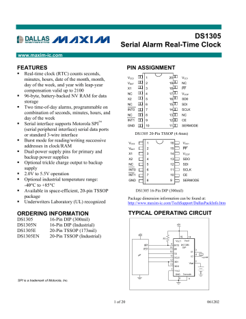 Ds1305 Serial Alarm Real Time Clock Manualzz